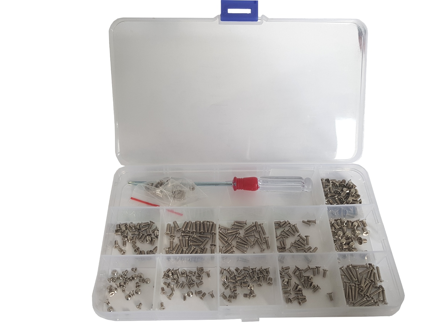 В комплект входят следующие винты: - М2*3мм х30шт. - М2*4мм х30шт. - М2*5мм х30шт. - М2*6мм х30шт. - М2*8мм х30шт. - М2*10мм х30шт. - М2,5*4мм х30шт. - М2,5*5мм х30шт. - М2,5*6мм х30шт. - М2,5*8мм х30шт. - М3*5мм х30шт. - М3*7мм х30шт. - отвертка x1