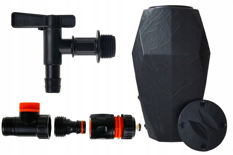✅ В комплект поставки контейнера входит кран и набор соединений ZDW, позволяющий подсоединить садовый шланг диаметром 1/2 дюйма к контейнеру для дождевой воды.