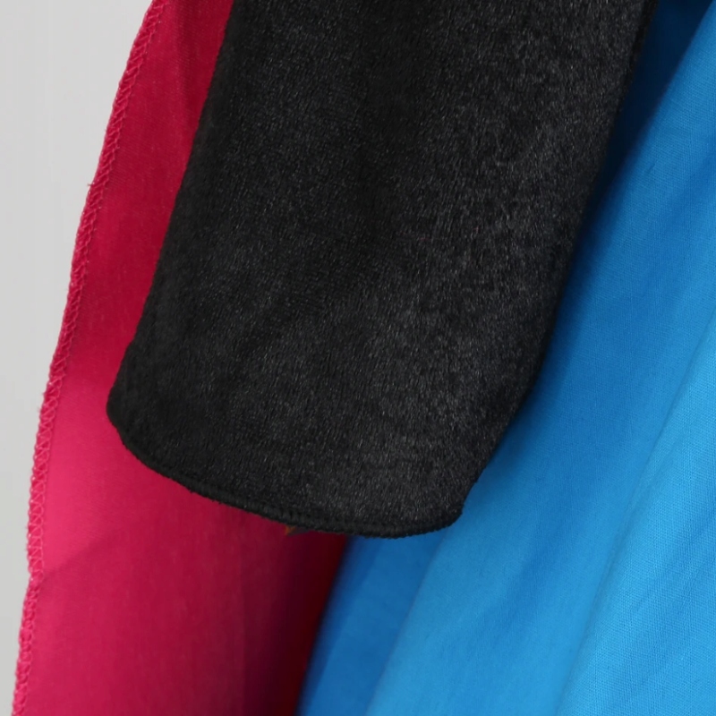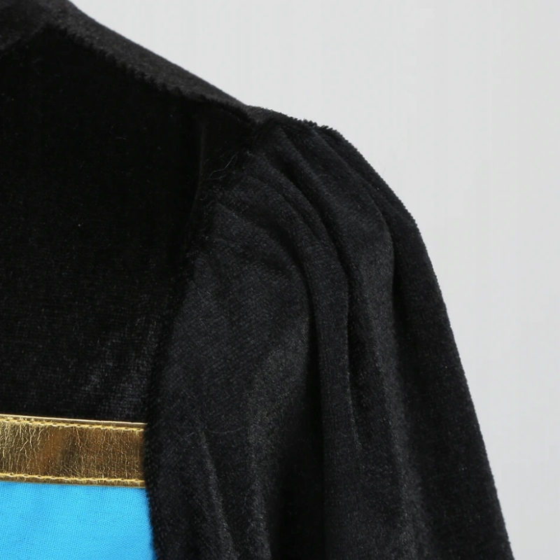 - Длинные рукава из бархата, слегка блестящего черного материала.