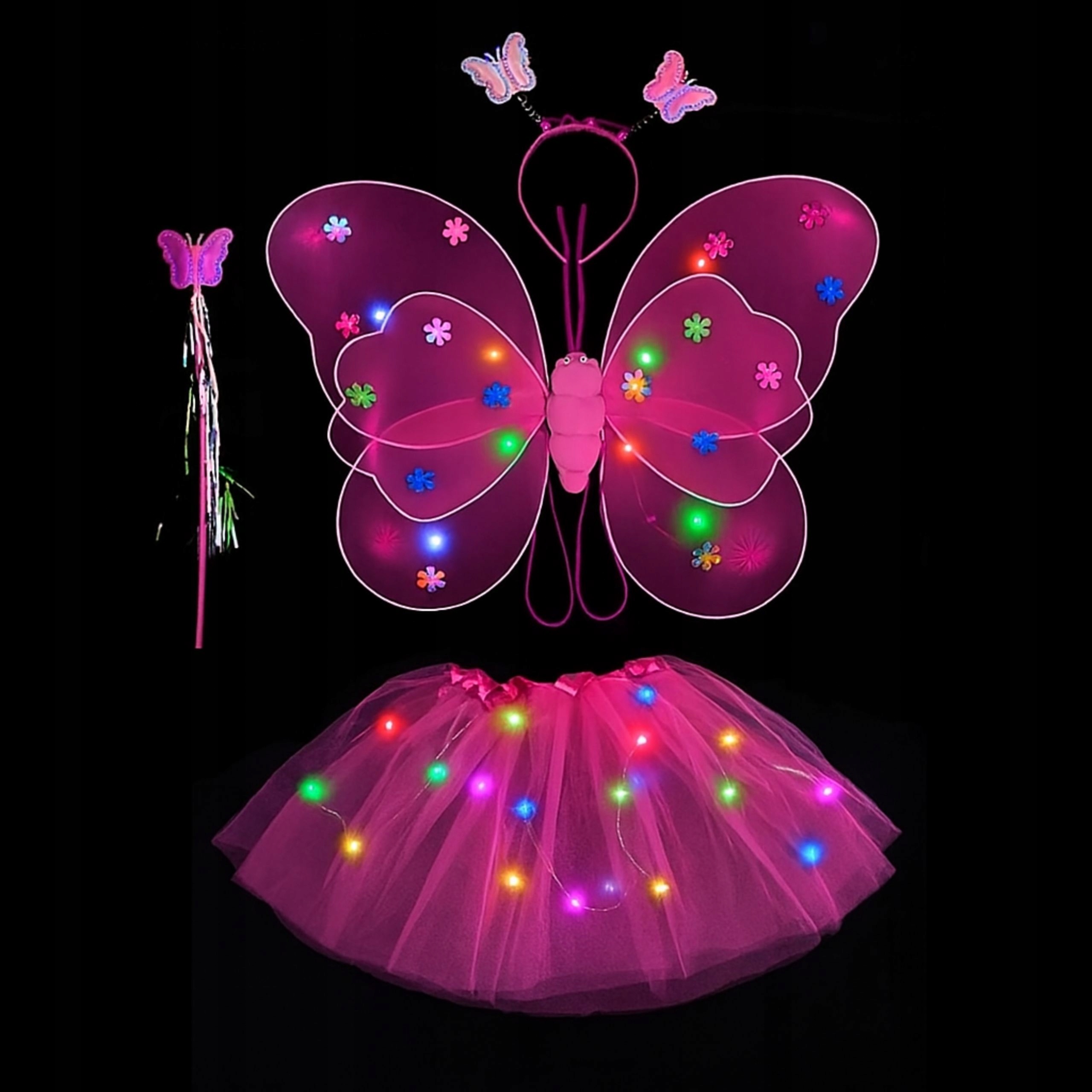 НАРЯД КОСТЮМ БАБОЧКИ КРЫЛЬЯ ФЕИ ЮБКА-ПАЧКА СВЕТОДИОДНАЯ ЮБКА Скипетр ПОВЯЗКА НА ГОЛОВУ 3–9 л