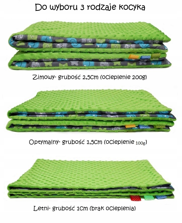 Они изготовлены из мягкого, чрезвычайно приятного на ощупь флиса Minky и первоклассной детской ткани (100% хлопок).В состав материалов входят все необходимые сертификаты, разрешающие контакт с детьми, в том числе: Oko-TEX Standard 100. 3 варианта толщины одеяла на выбор (по умолчанию комплект присылается с оптимальным вариантом одеяла в цветах с миниатюры аукциона)
