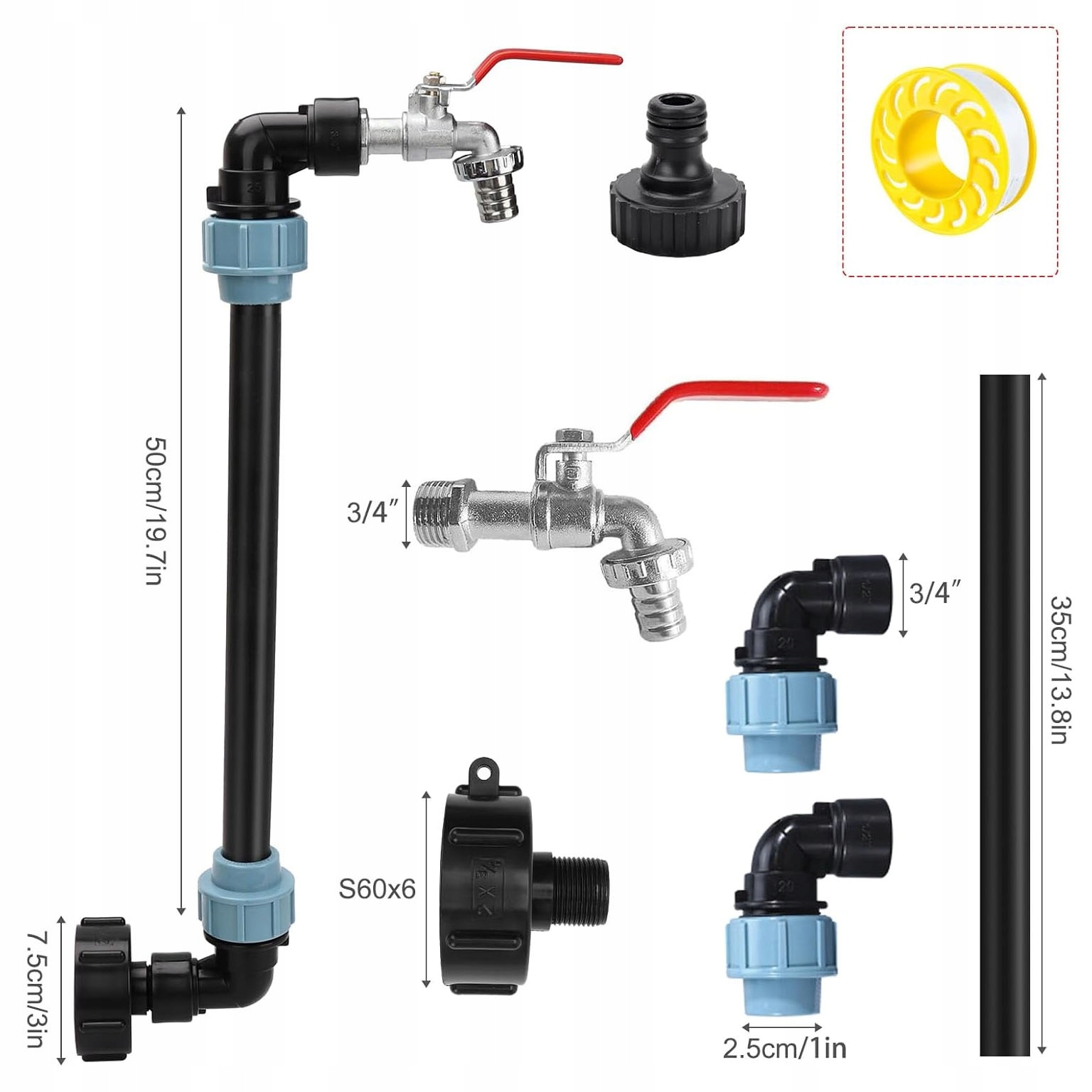 КОМПЛЕКТ ВЫСОКОГО КРАНА 3/4 ДЮЙМА ДЛЯ РЕЗЕРВУАРА ДЛЯ ДОЖДЕВОЙ ВОДЫ MAUZER IBC 1000 Л