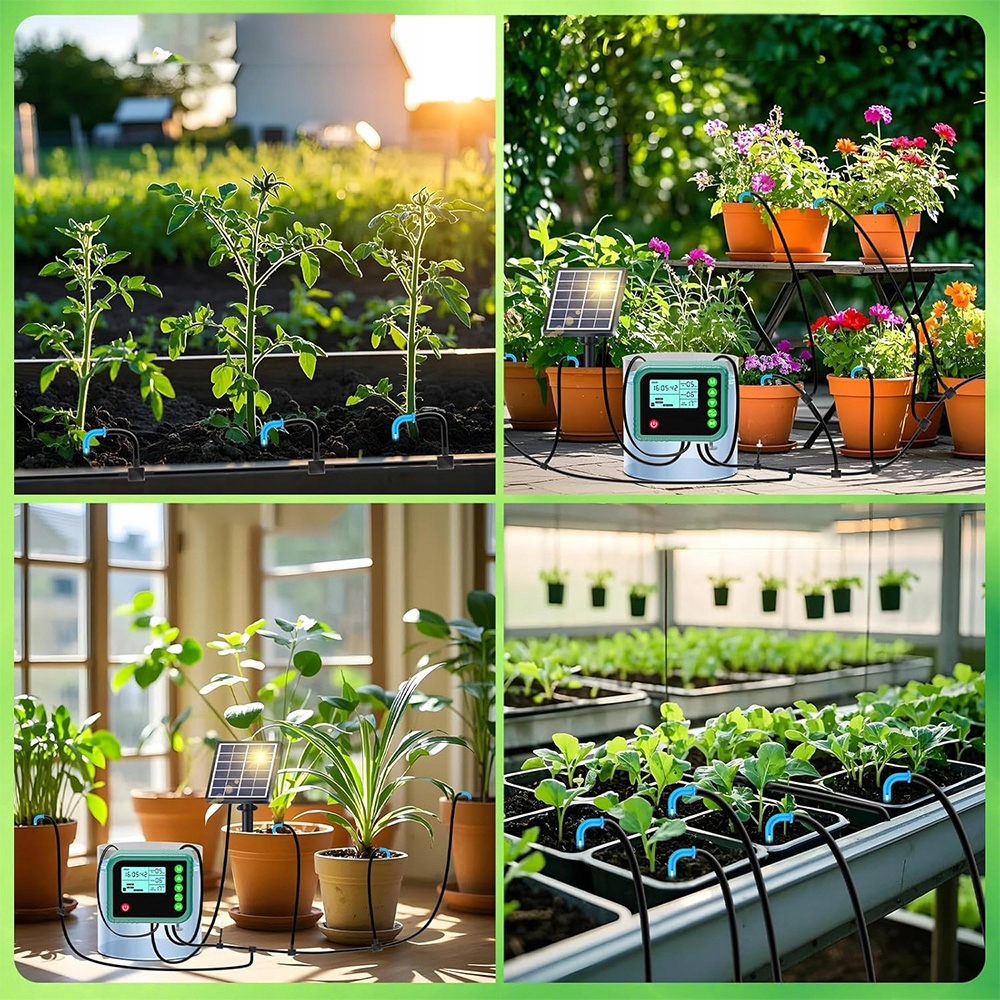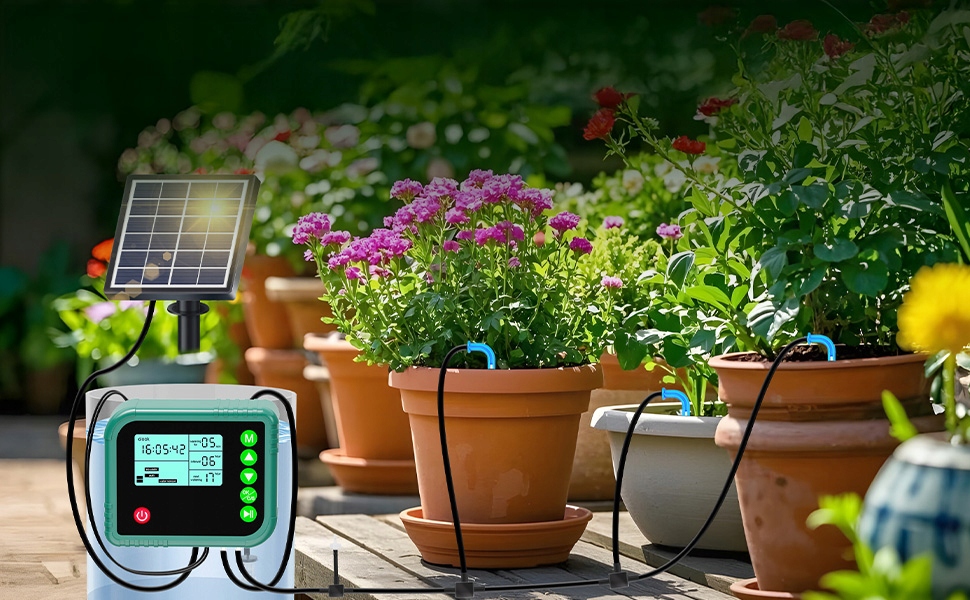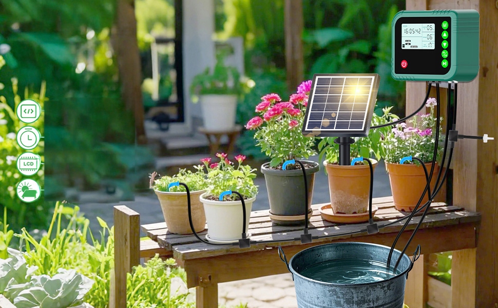 Солнечная система орошения растений программируется, и настройки автоматически сохраняются во внутренней памяти. Даже если питание отключено, пользовательские программы и настройки остаются в памяти. Нет необходимости перепрограммировать таймер полива каждый раз при замене батареи. Встроенный контроллер солнечного орошения имеет большой ЖК-дисплей и интуитивно понятный пользовательский интерфейс, который очень легко читать и программировать.