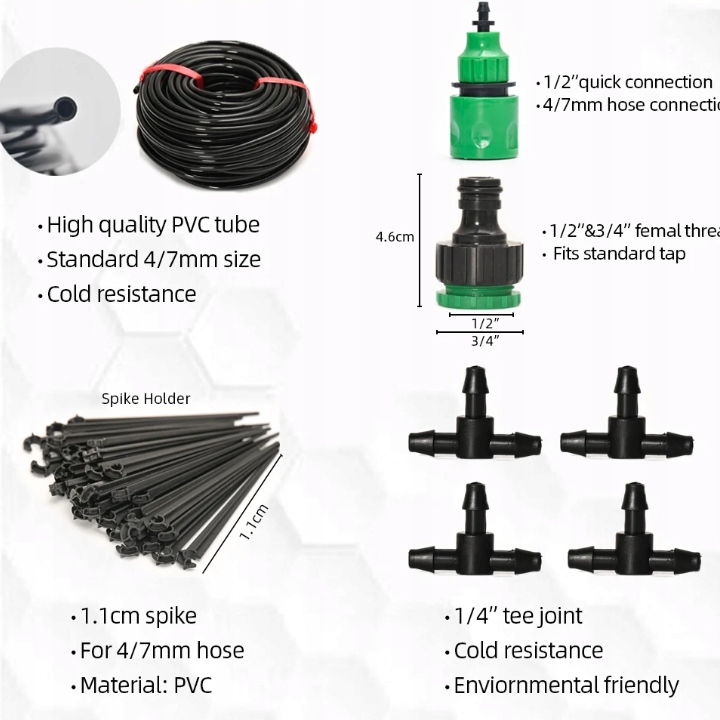 Наша система микроорошения является ключом к экономии воды и эффективному орошению растений. Благодаря ему вы сможете экономить до 70% воды, точно доставляя ее к корневой зоне растений. Система работает медленно и эффективно, сводя к минимуму испарение воды. Более того, вы можете легко регулировать поток воды через каждую насадку в соответствии с потребностями отдельных растений. Это простое, но чрезвычайно эффективное решение для вашего сада!