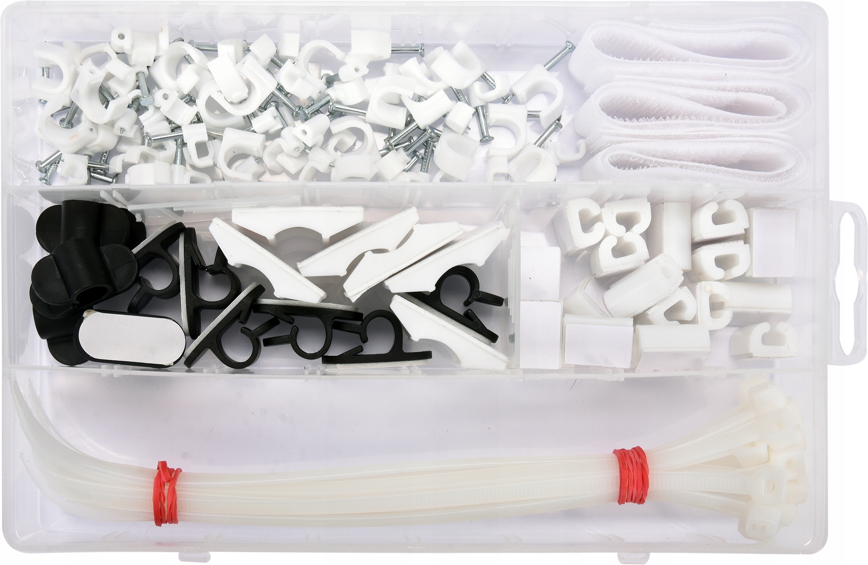 КОМПЛЕКТ ДЛЯ КРЕПЛЕНИЯ КАБЕЛЯ 124 ШТ. ЛЕНТЫ ЗАЖИМЫ РУЧКИ VELCRO VOREL