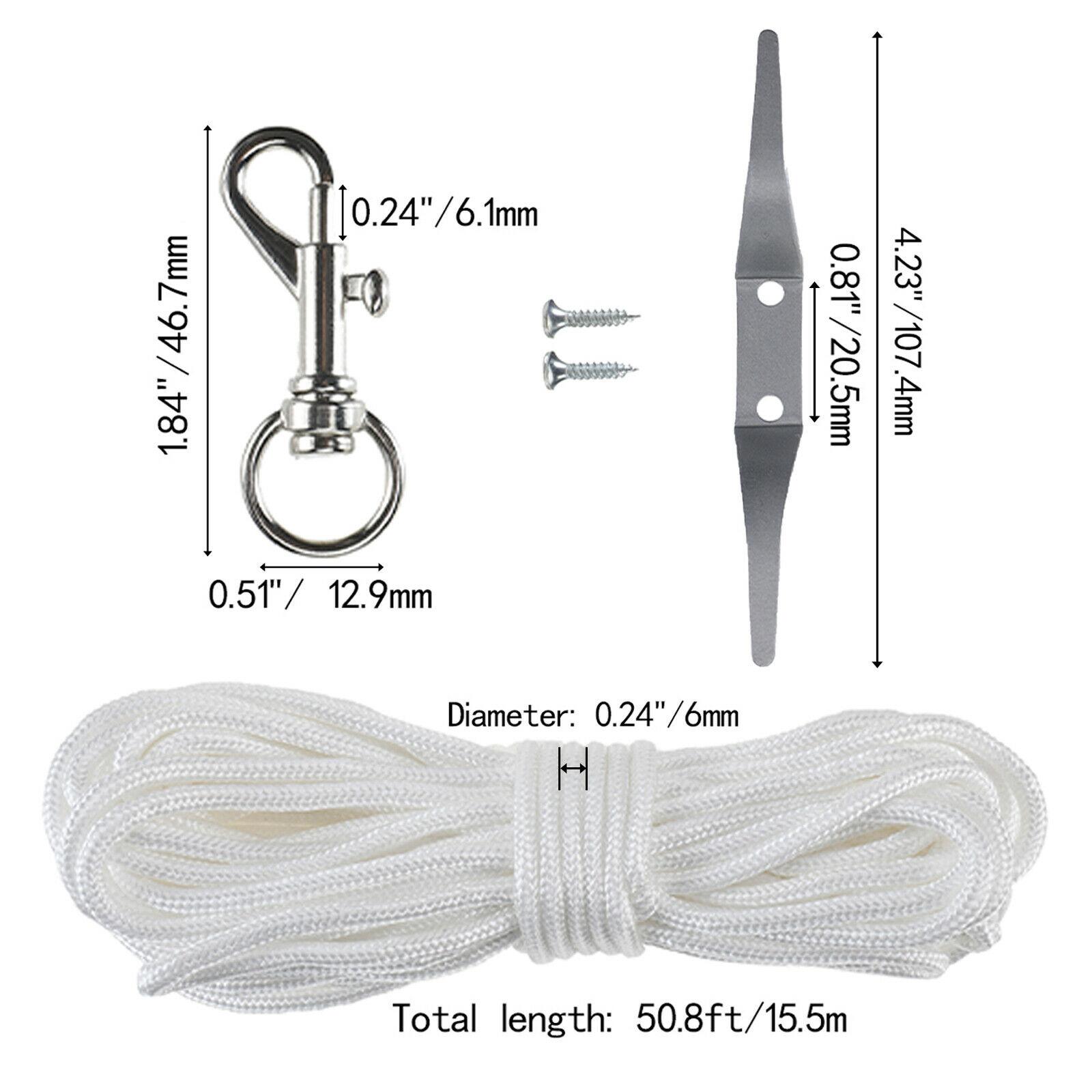 Флагманская мачта: изготовлена из твердой плетенной полиэфирной веревки, устойчивая к истиранию и истиранию, диаметром 1/4 дюйма и длиной 50 футов, подходящих для мачты флагов до 25 футов.