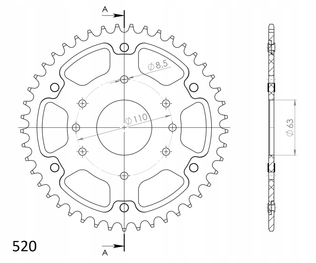 Центр звездочки изготовлен из легкого и прочного авиационного алюминия, а венец зуба — из никелированной углеродистой стали.