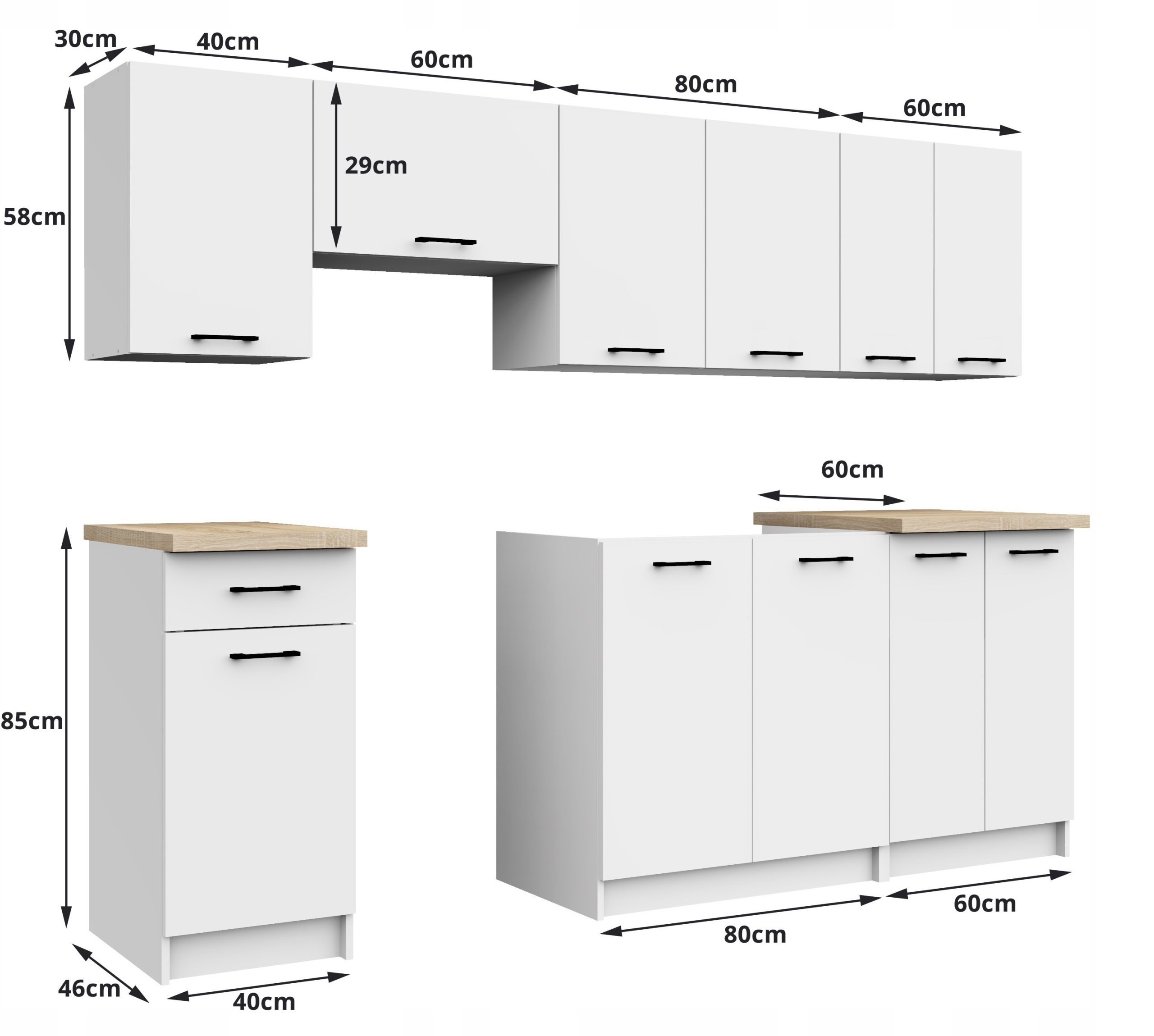 Комплект кухонной мебели Oliwia 240 см, кухонные шкафы с белой столешницей