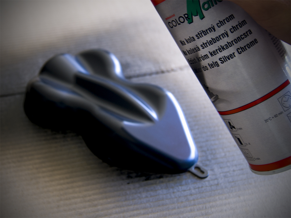 1. Хромированный эффект ColorMatic. Лак устойчив к истиранию, царапинам, выцветанию, погодным условиям и химическим веществам. Окрашенные элементы следует хорошо загрунтовать грунтовкой, подходящей для данного материала.В случае покраски пластиковых элементов рекомендуется сначала нанести грунтовку для пластика, а затем грунтовку с эффектом.