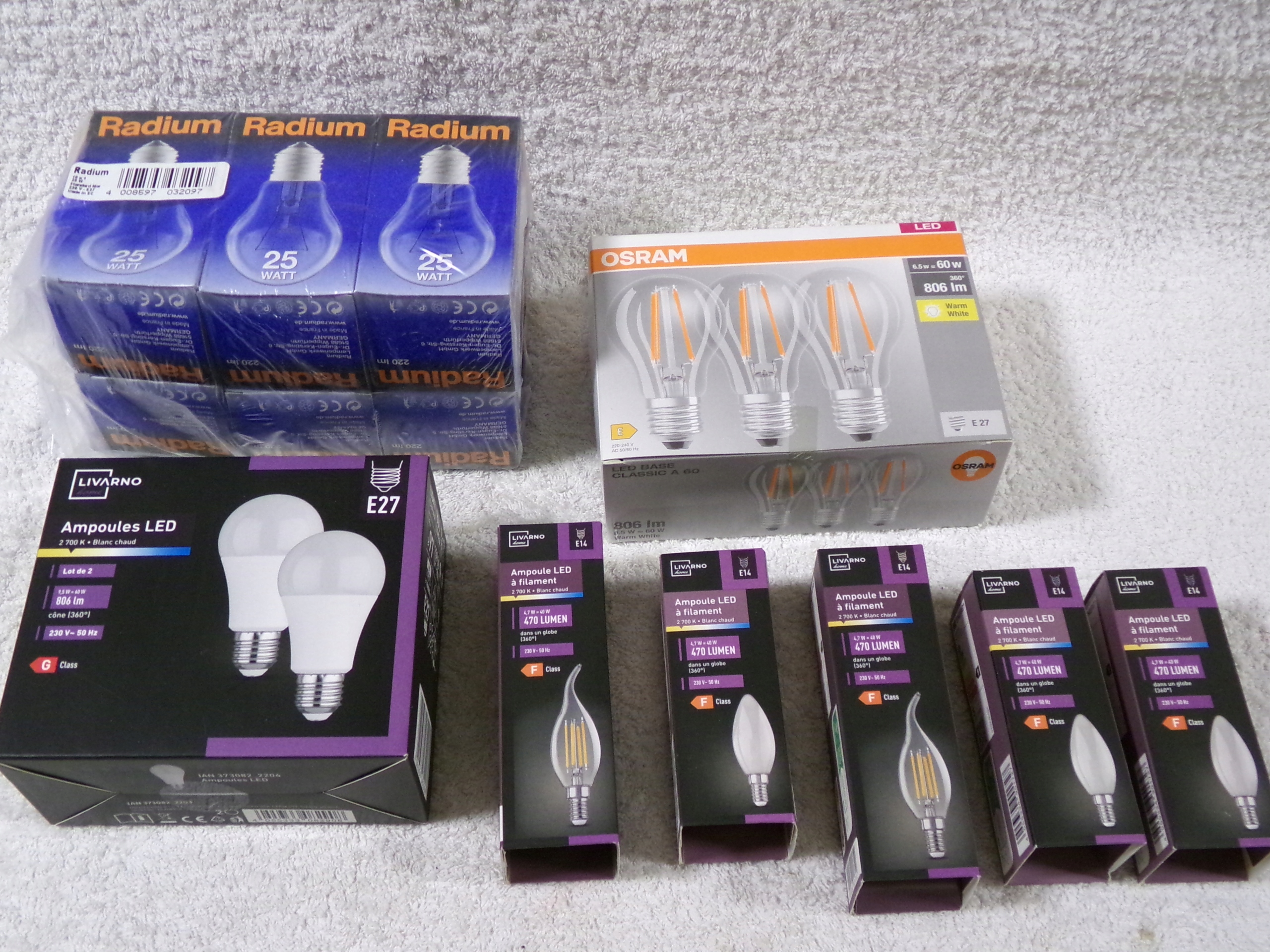 Комплект лампочек Е27 и Е14. В очень хорошем состоянии, без повреждений.