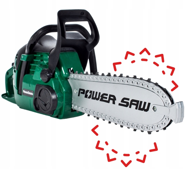Резиновая цепочка крутится как настоящая. Чтобы его включить, нам нужно нажать кнопку, которая приведет в движение пильную цепь. Благодаря тому, что цепочка резиновая, игрушка безопасна не только для ребенка, но и для нашей мебели, которую сложно повредить.