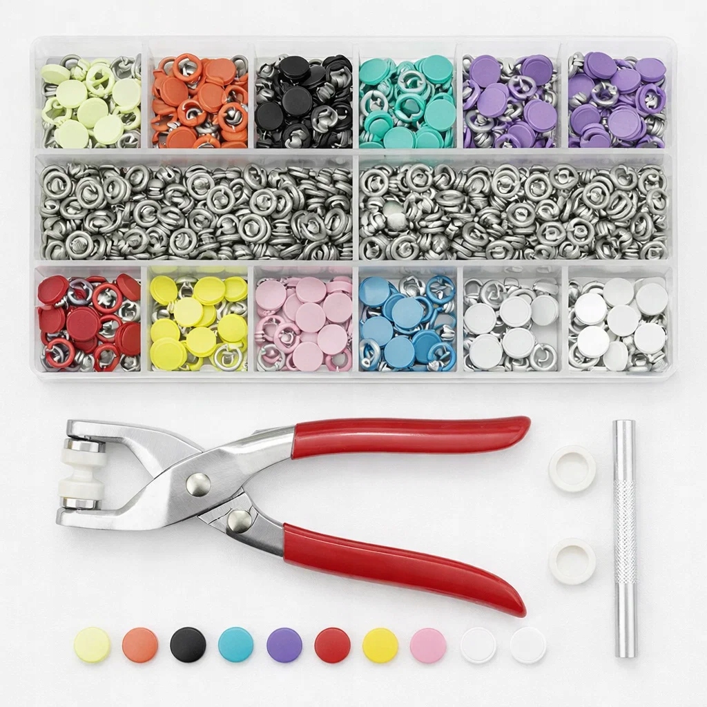 - набор хорошо подойдет в повседневной работе в мастерской, обеспечивая точность, долговечность и комфорт при установке застежек и люверсов.