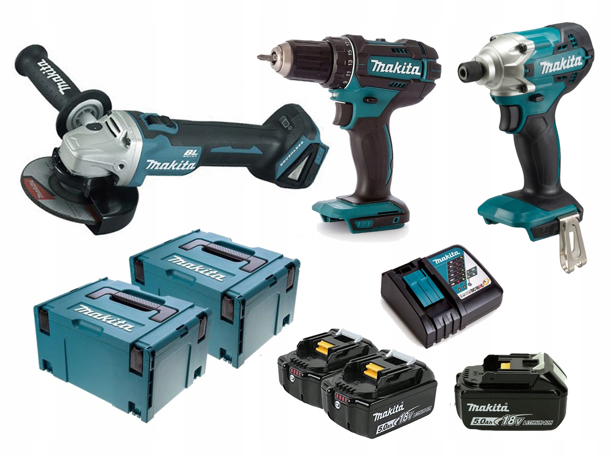 КОМБИНИРОВАННЫЙ НАБОР MAKITA 18 В DLX2339JX1 (DDF482+DTD156) 3x5,0 Ач MAKPAC+DGA504ZJ
