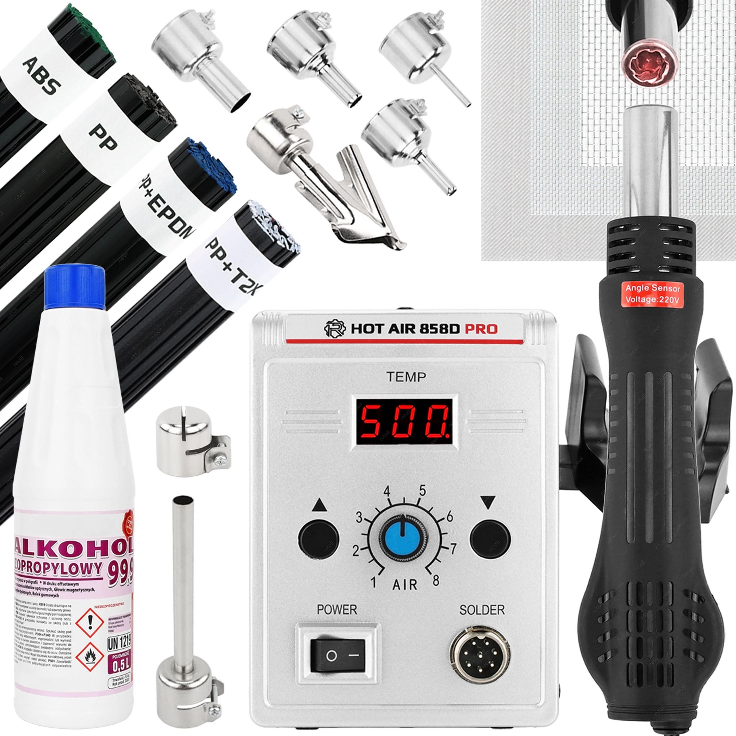 КОМПЛЕКТ — МАШИНА ДЛЯ СВАРКИ ПЛАСТИКА ГОРЯЧИМ ВОЗДУХОМ 858D PRO 700W + АКСЕССУАРЫ XL