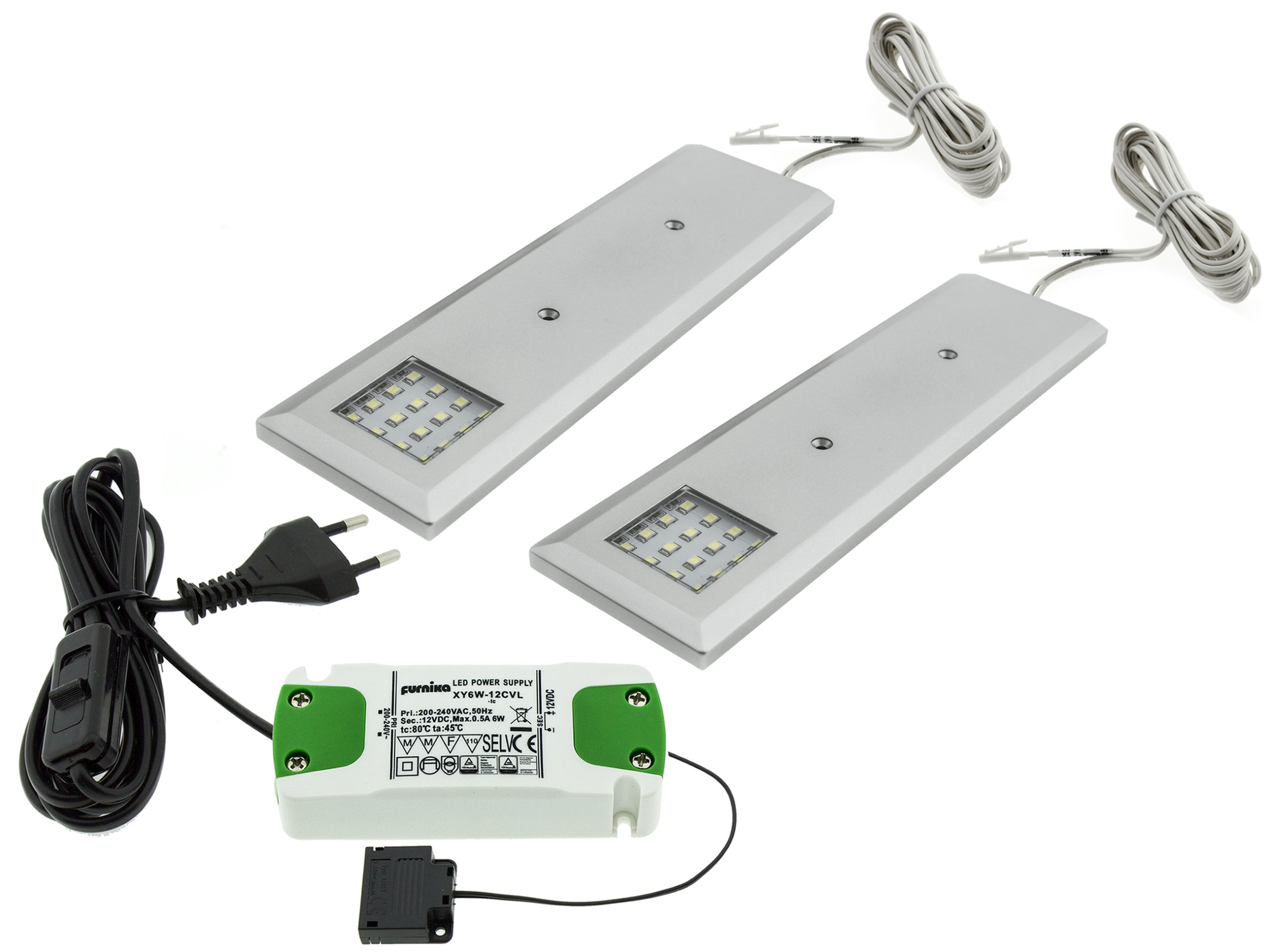 SET 2x NEO LED мебельный светильник под шкаф 12 В постоянного тока с монтажным блоком питания 15 Вт, идеально подходит для освещения под шкафом.