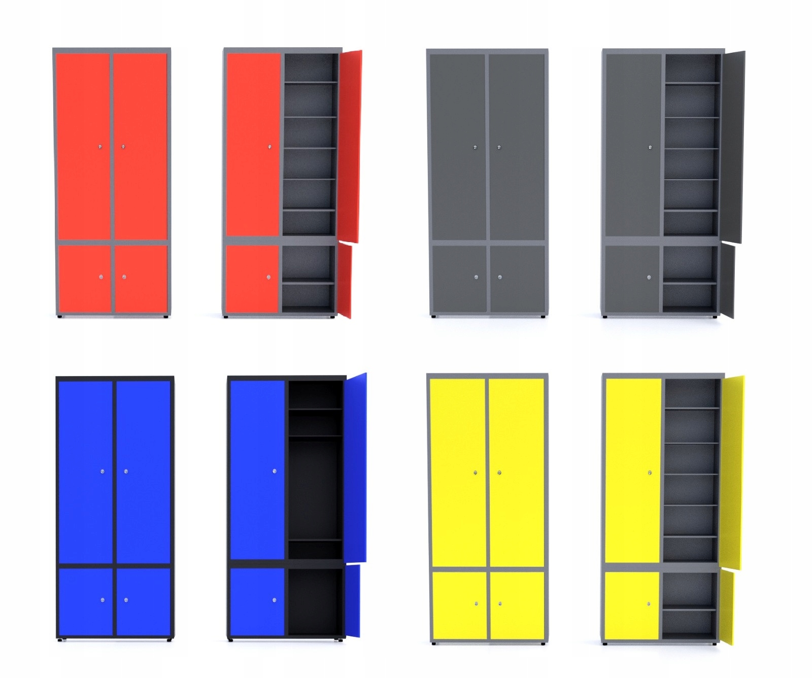 Комплект мебели может быть выполнен в одном из 4 цветов (красный, серый, синий или желтый). При размещении заказа выберите цвет и укажите его в примечаниях к заказу. По специальному заказу можем изготовить комплект в любом цвете из палитры RAL.