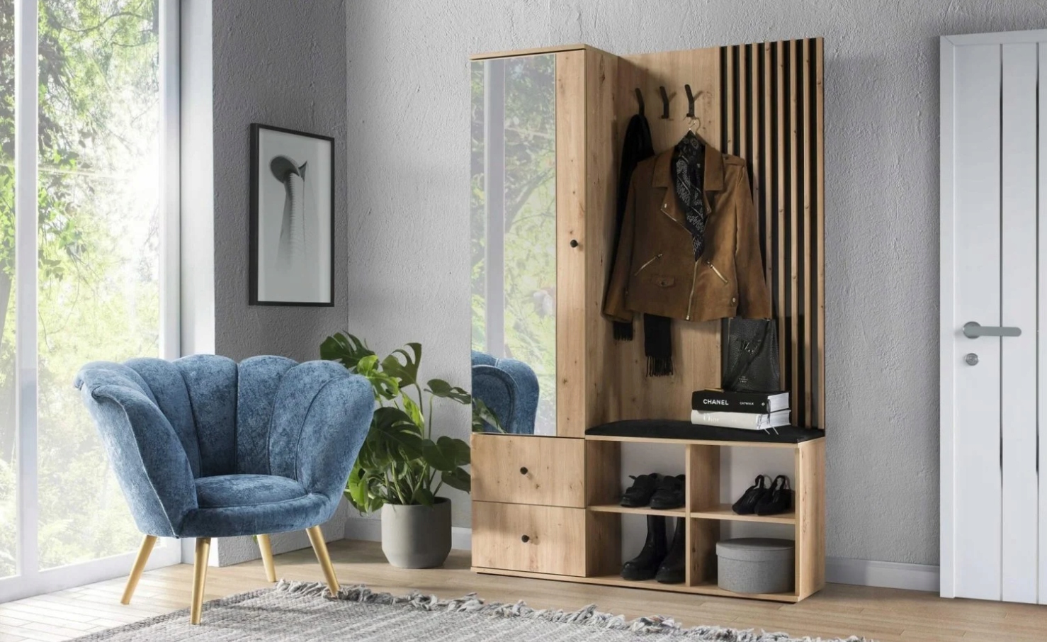 - Большое зеркало, размещенное спереди, визуально увеличивает пространство. Чтобы адаптироваться как к малым, так и к большим поверхностям, мы создали два размера гардероба: 179 и 199.