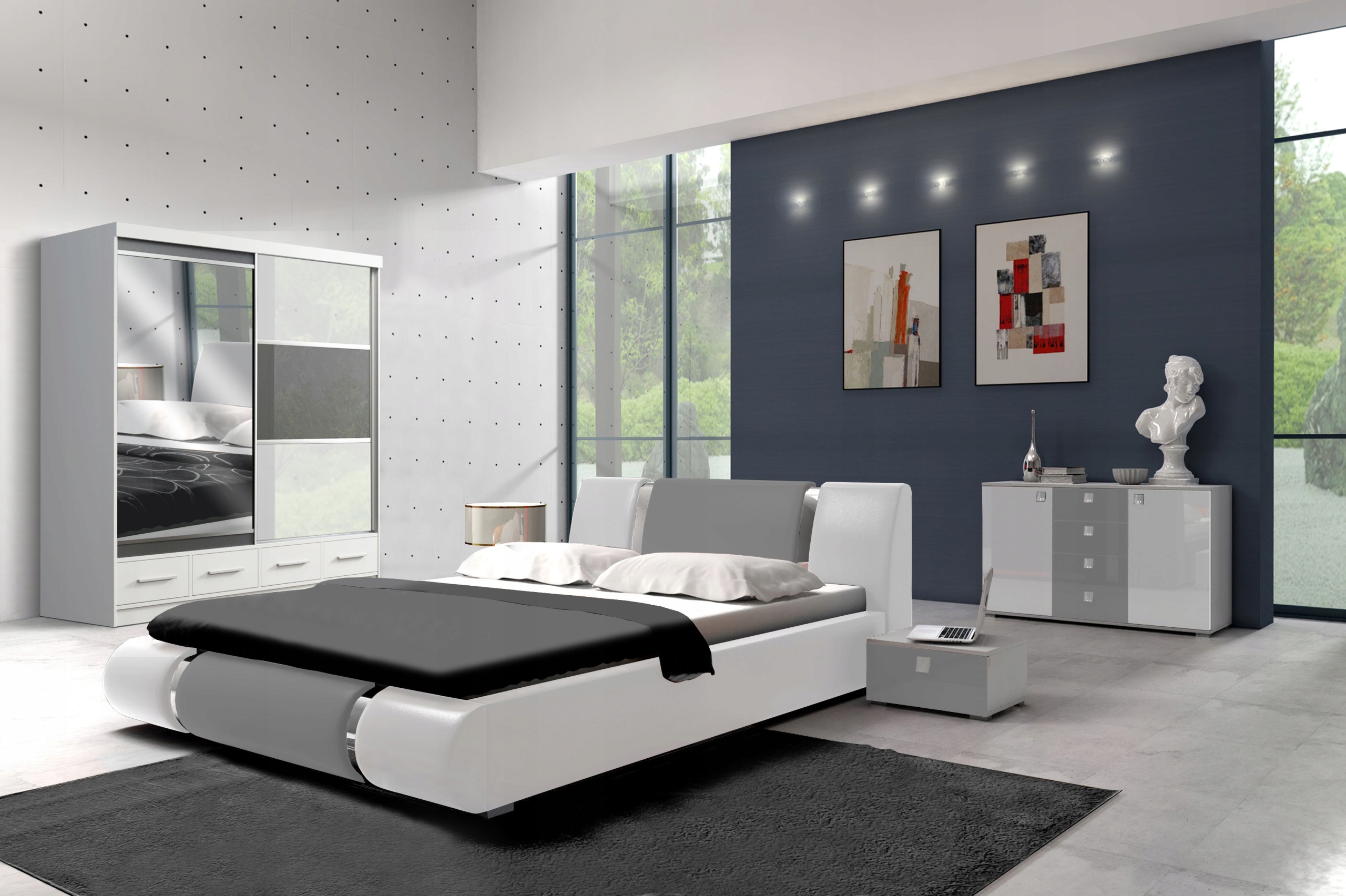 КОМПЛЕКТ МЕБЛІВ ДЛЯ СПАЛЬНІ ANATAZ БІЛИЙ І СІРИЙ
