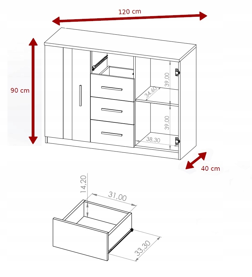Верх комода выполнен из ламинированного картона толщиной 22 мм.