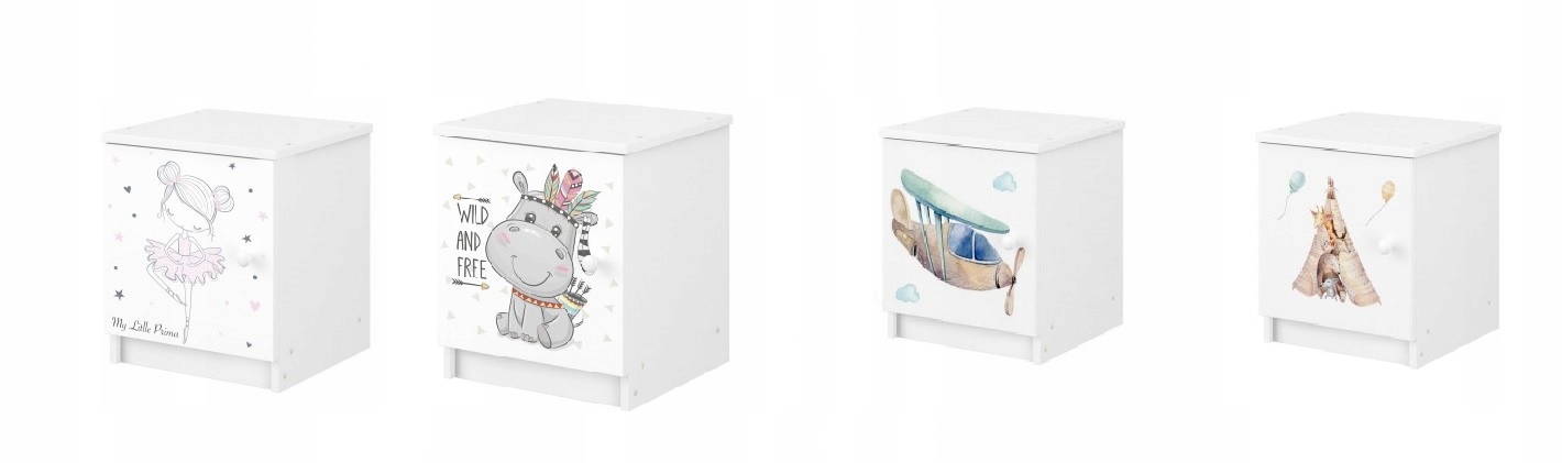 Ночной шкаф - это практичный и функциональный предмет мебели, который найдет его использование в комнате каждой детской. Эргономичные размеры обеспечивают бесплатную мебель комнаты. Шкаф изготовлен из белого цвета, отделанный шпоном. Передняя часть контейнера имеет красочный отпечаток, который имеет красивые яркие цвета и защищен специальным ламинатом, чтобы он не исчезал и не исчезал. Вы можете без боя мыть его тканью и жидкостью.