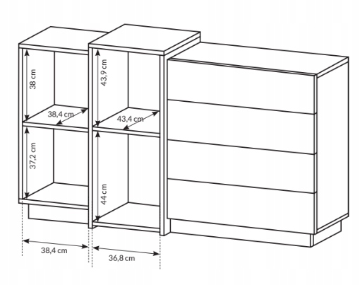 Комод оснащен 4 просторными ящиками. Элегантные цвета добавляют легкости и делают комнату светлее.