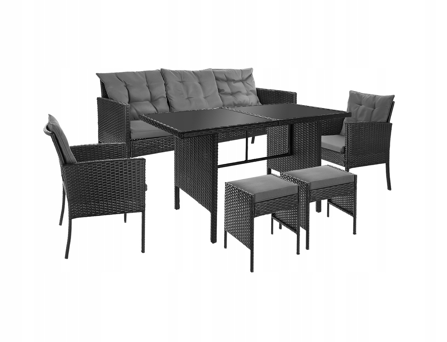 Комплект изготовлен из высококачественного материала - техноротанга, который отличается высокой прочностью и устойчивостью к погодным условиям. Прочная стальная конструкция делает мебель устойчивой и долговечной, что гарантирует долговечность в течение многих сезонов. При этом мебель легкая и удобная. Идеальное решение для сада, террасы или балкона. Набор состоит из нескольких разных элементов, поэтому их легко перемещать.