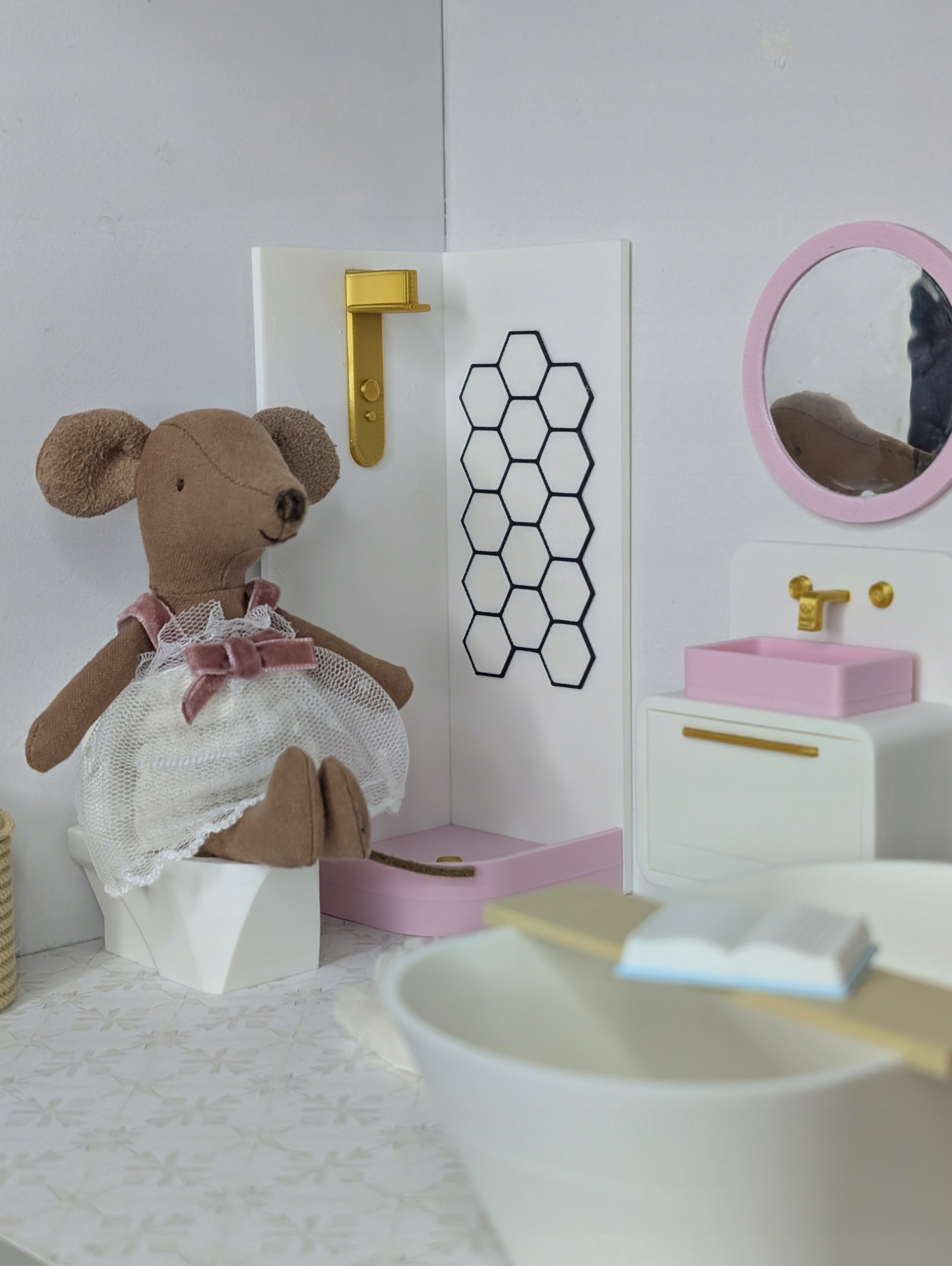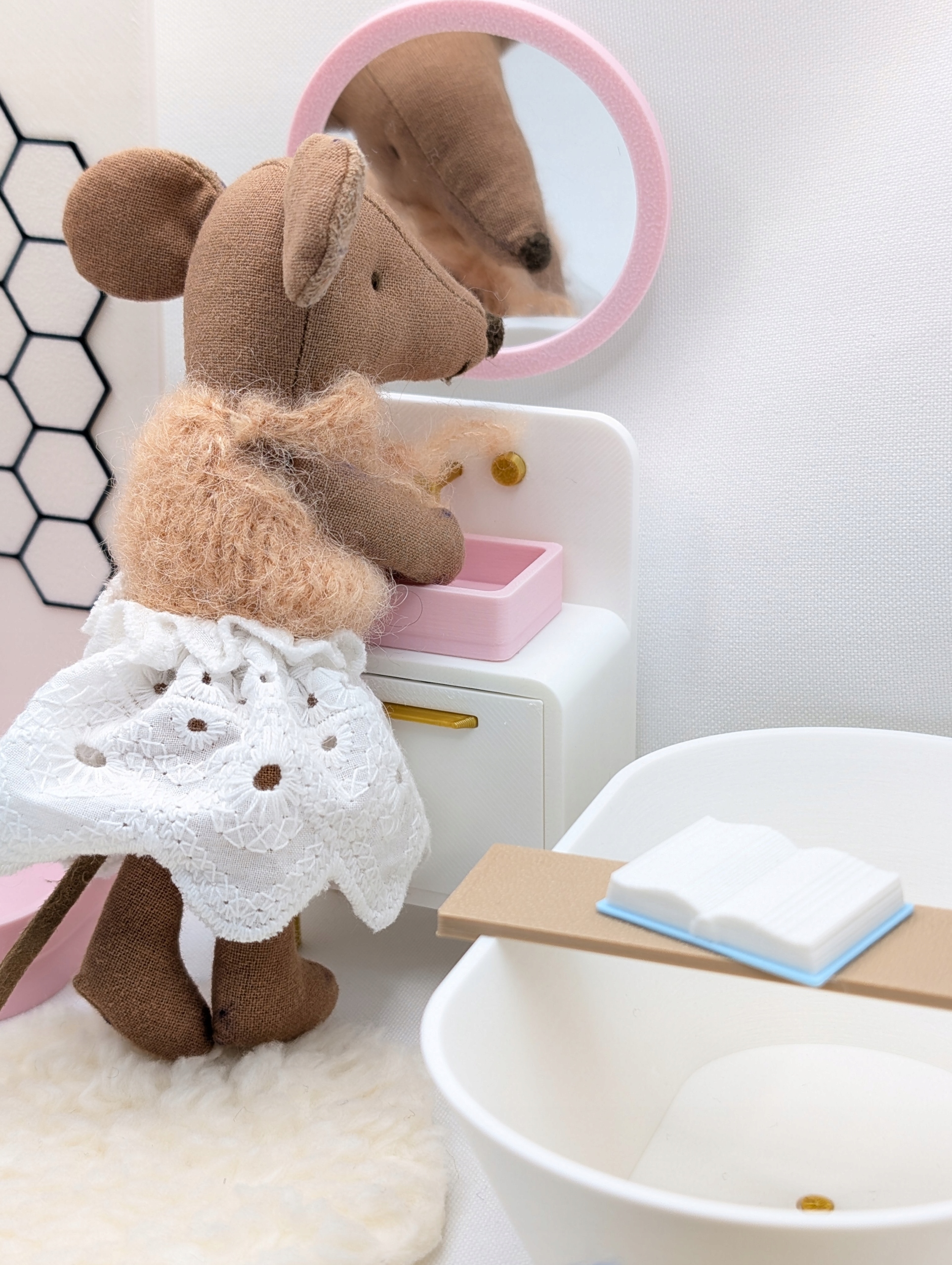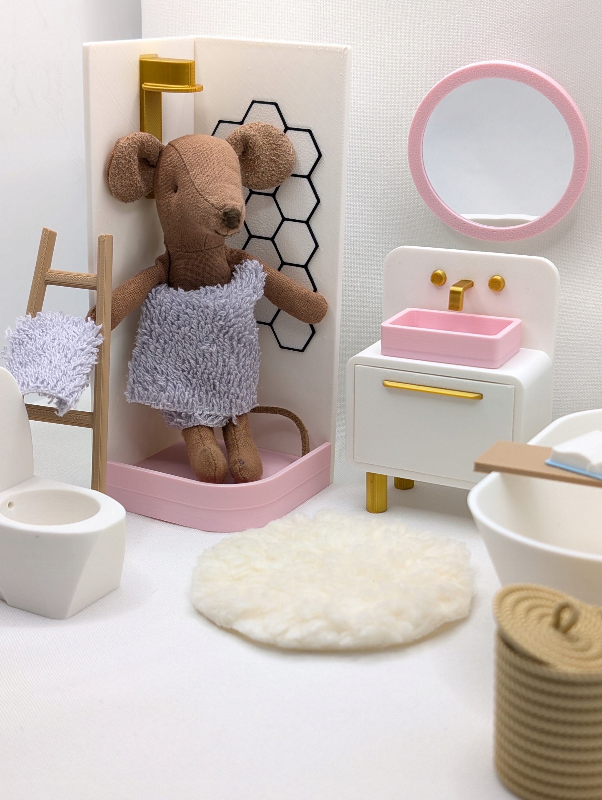 Ищете уникальную мебель для своего кукольного домика? Этот очаровательный набор «Ванная» создан специально для мышей, куколок и фигурок. Идеально подходит для творческой игры, развития воображения и создания собственных миниатюрных миров.
