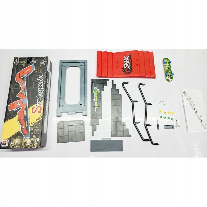 - Включает также 1 мини-рампу. скейтборд и 1 комплект аксессуаров, которые можно собрать с помощью инструментов или сборных запасных колес.