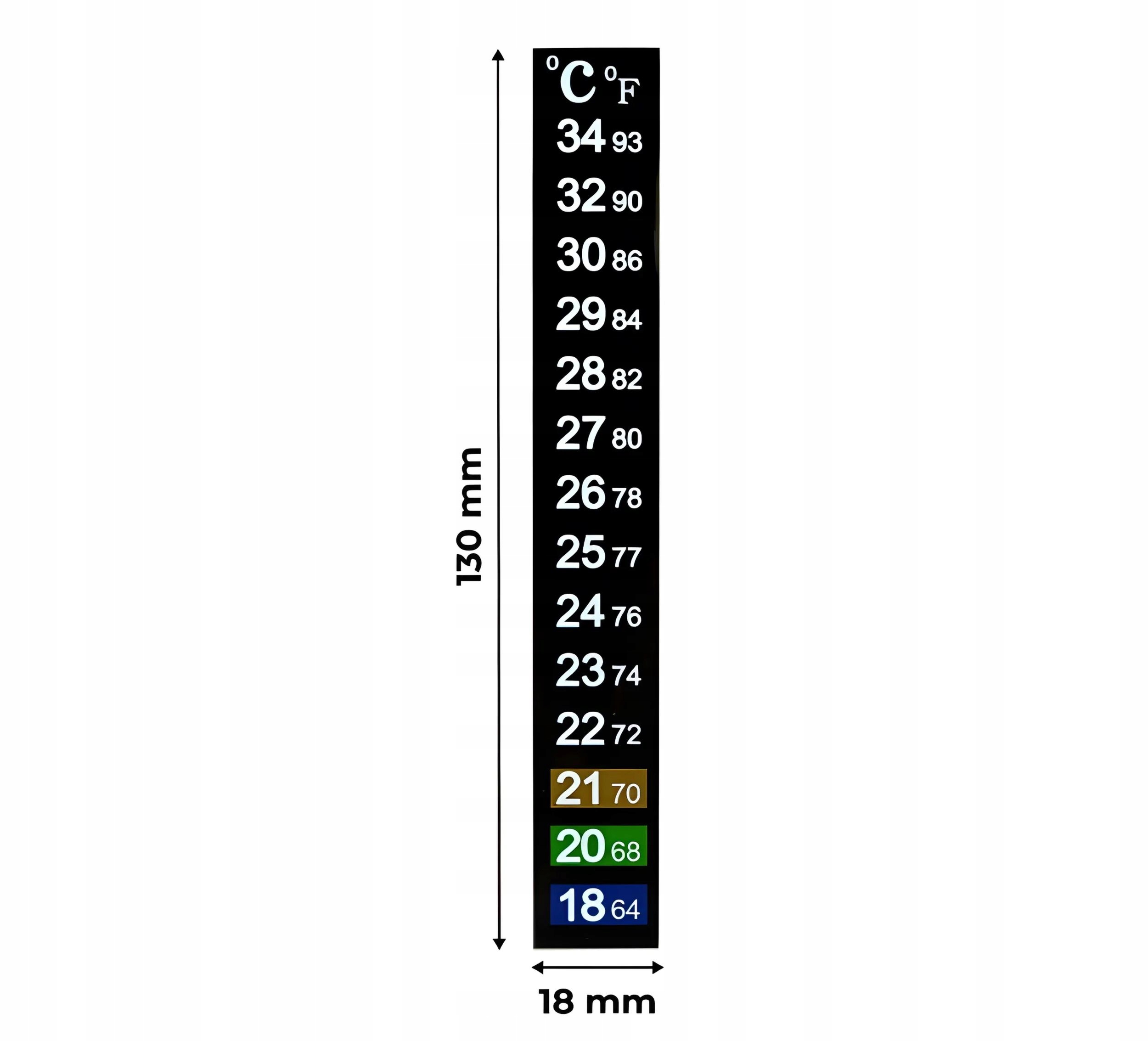 - Самоклеящийся жидкокристаллический термометр 18–34°C