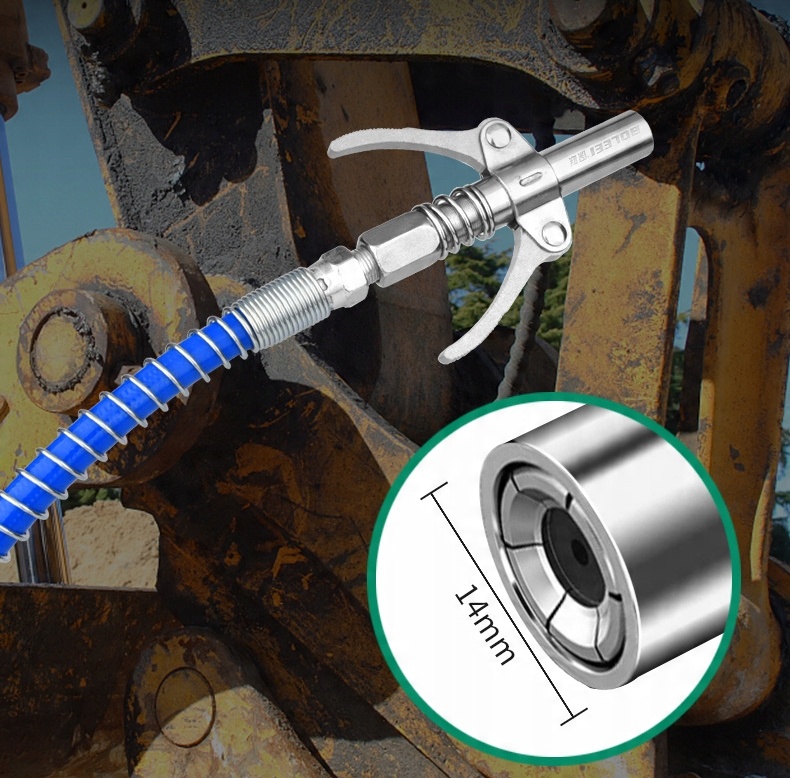 Наконечник шприца для смазки имеет двойную ручку, нескользящую конструкцию и плавный механизм втягивания, что позволяет работать одной рукой, смазка более эффективна. экономит трудозатраты, смазочный шприц прост в установке и использовании