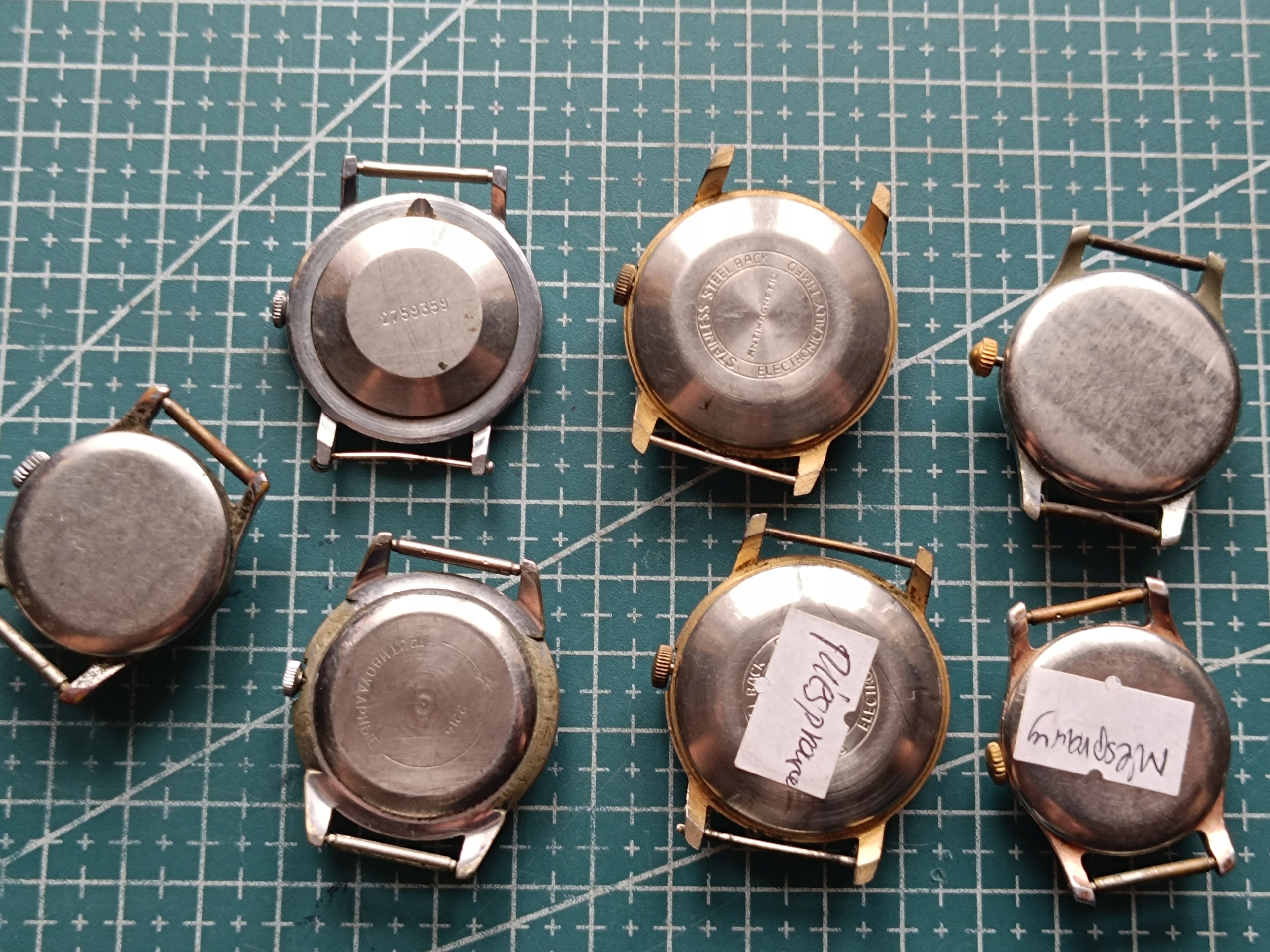 Приглашаем Вас сделать ставку на комплект из 7 механизмов с циферблатами, стрелками И КОРПУСОМ, продаем в поврежденном виде на запчасти или ремонт.
