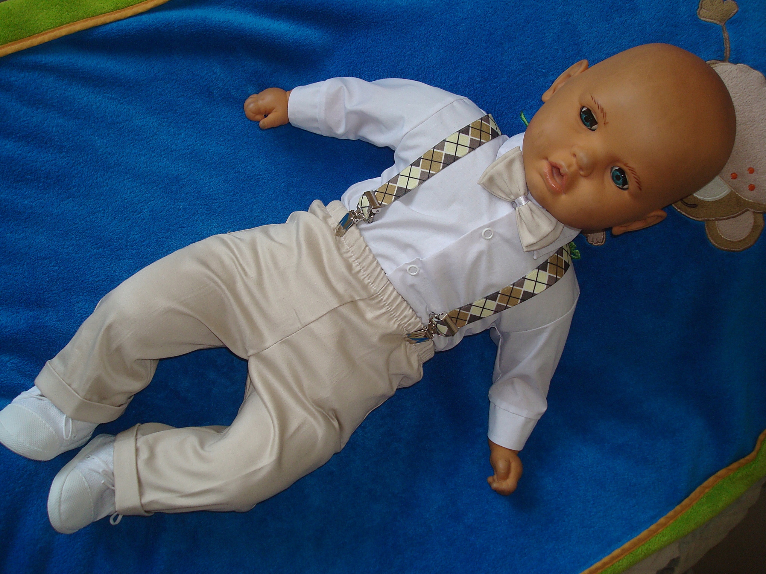 На данном аукционе мы предлагаем рубашку-боди+брюки+подтяжки+галстук-бабочку.
