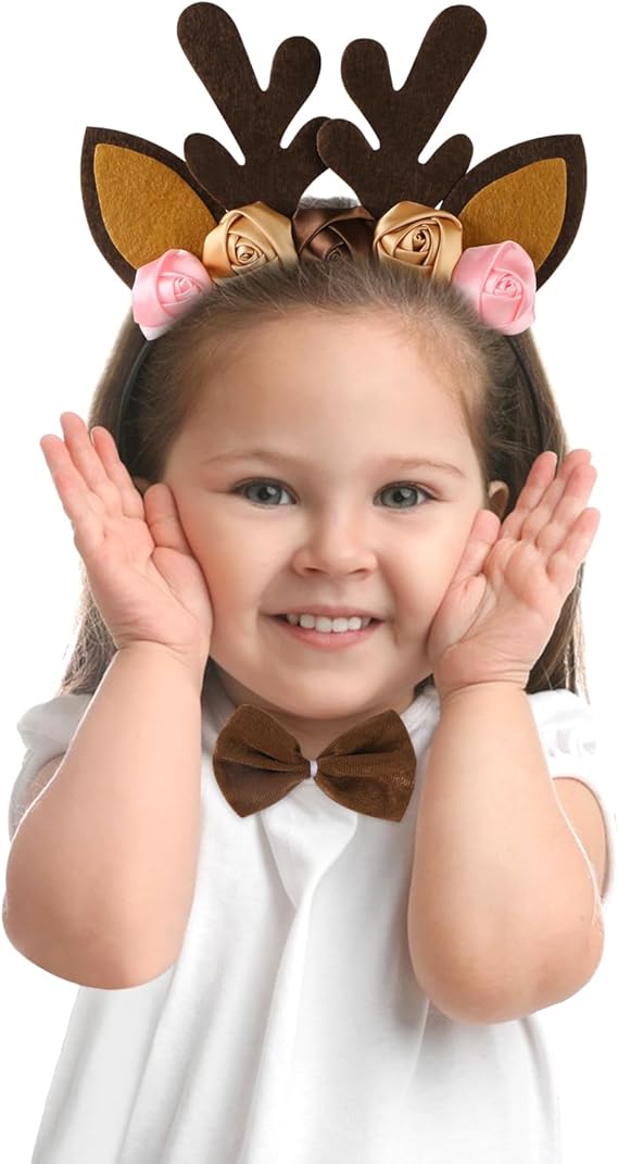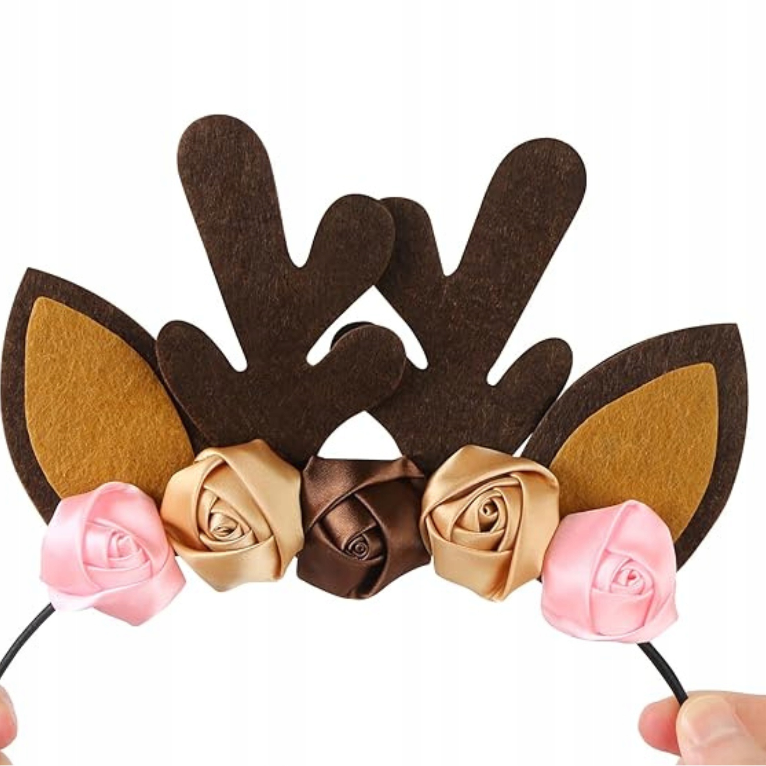 ✅ Повязка на голову: красивая повязка на голову оленями, украшенная уши, рога и цветы.
