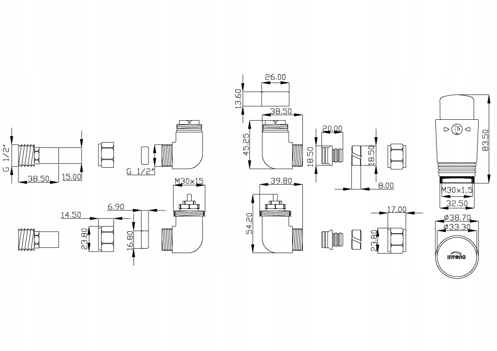 КОМПЛЕКТ ОСЕВЫХ ТЕРМОСТАТИЧЕСКИХ КЛАПАНОВ INVENA PROV 1/2 ГОЛОВКА СПРАВА/СЛЕВА ДЛЯ CO