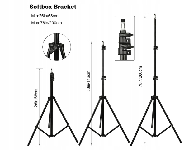 - 【Регулируемый металлический кронштейн для лампы】 Наш кронштейн для лампы изготовлен из высококачественного алюминиевого сплава и может удлиняться на 70–200 см/27–78 дюймов. Стабильная трехсегментная конструкция и надежная система фиксации делают использование безопасным и надежным. Стандартные винты 1/4 в верхней части подставки позволяют устанавливать другие устройства, например кольцевые светильники, проекторы и т. д.