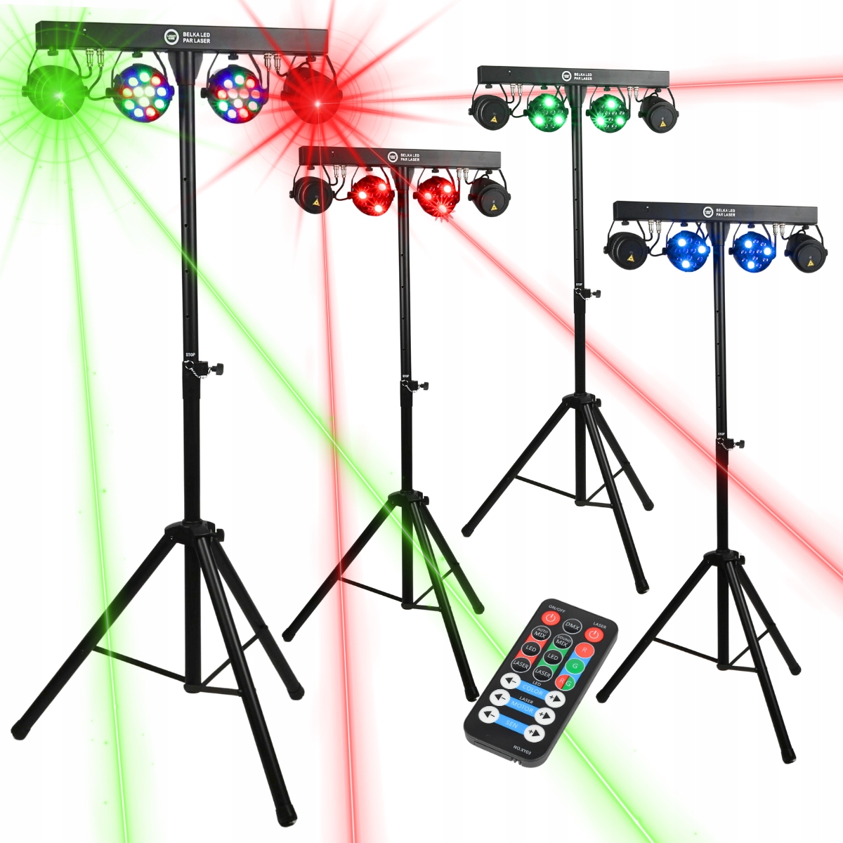Лазерный луч LED PAR — это простой и быстрый способ реализовать динамическое освещение сцены. Весь комплект легкий и мобильный, а благодаря возможности управления им с помощью беспроводного инфракрасного пульта дистанционного управления отлично подойдет в ситуациях, когда ленту необходимо установить в труднодоступном месте.