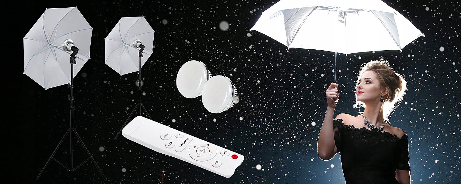 Комплект занимает мало места, обеспечивая при этом высокую светоотдачу. Входящие в комплект пульты дистанционного управления позволяют плавно управлять лампочками, увеличивая и уменьшая мощность света. Это значительно облегчает вашу работу. Вы не будете постоянно приближаться к лампам и перемещать их, чтобы получить необходимую интенсивность света. Управляя пультом дистанционного управления, вы также можете плавно менять цвет света. Установка светильников, лампочек и зонтов на штатив очень проста и занимает мало времени.