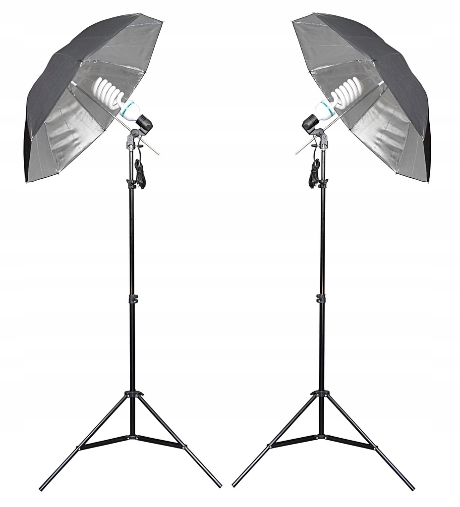 Набор освещения непрерывного света 2x125 Вт с серебристо-черными светоотражающими зонтиками 84 см