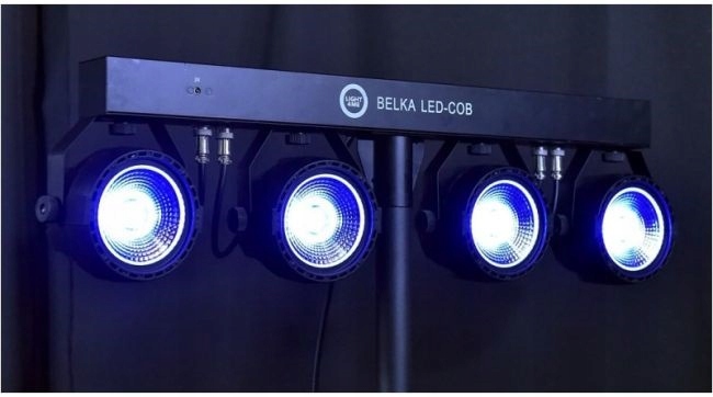 Light4Me COB PAR LED луч — это полный комплект освещения с возможностью дистанционного управления, что ✅ идеально подходит для любой вечеринки. Его наиболее важной частью являются 4 сплошных светодиодных отражателя PAR с диодами COB (Chip On Board). Каждый отражатель имеет мощность 30 Вт и работает в цветовой палитре RGB (красный, зеленый, синий). Освещение смонтировано на 66-сантиметровой балке, на задней стороне корпуса которой расположена панель управления, состоящая из четырех кнопок (Меню, Вверх, Вниз, Ввод) и Светодиодного дисплея.
