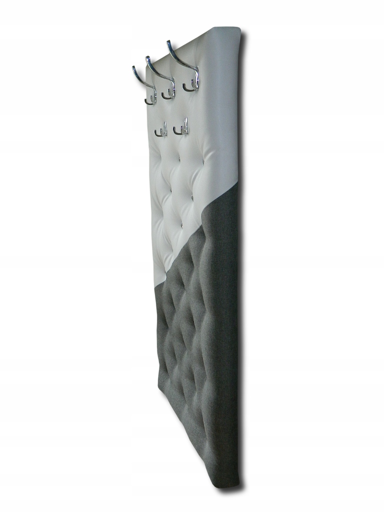 На аукционе представлена мягкая панель с пятью вешалками следующих размеров: высота 118 см, ширина 60 см, глубина 10 см, а также открывающийся пуф/коробка шириной 60 см, глубиной 35 см, высота 40см.