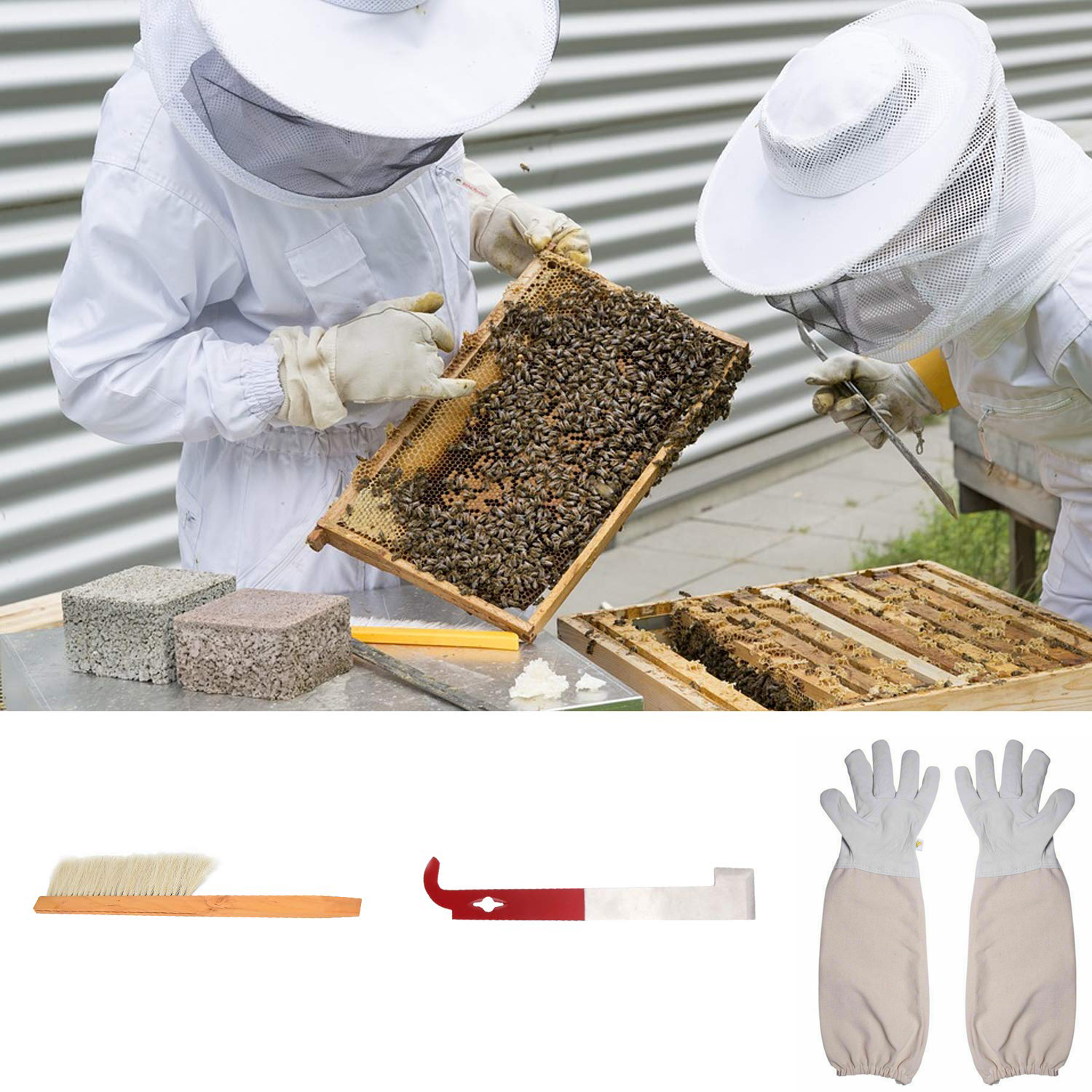Набор для пчеловодства с перчатками, щеткой для пчел и скребком
