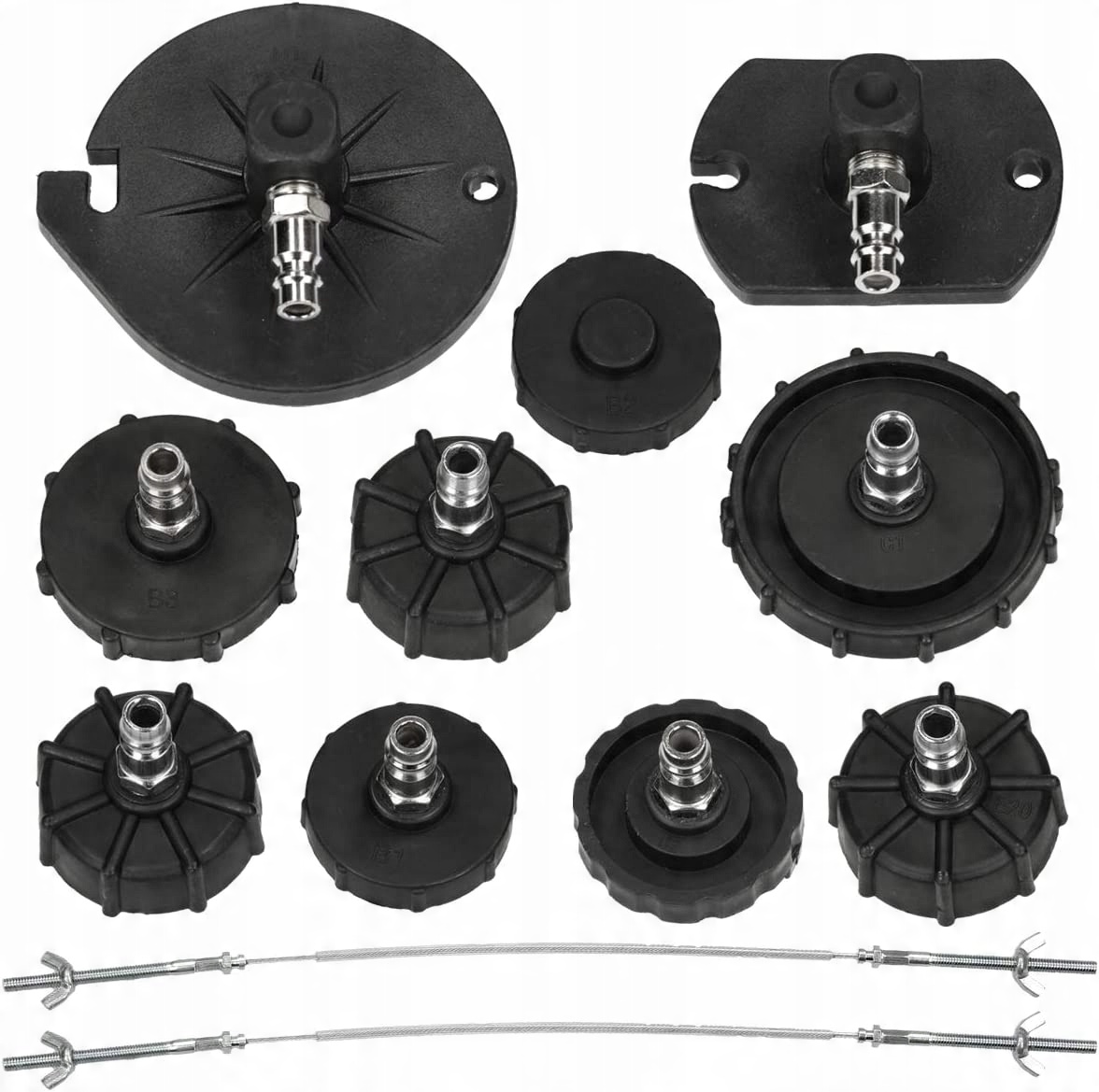 Набор из 11 пластиковых заглушек конической формы с резиновыми уплотнениями. Полезно для пневматического устройства для замены тормозной жидкости с быстроразъемным разъемом 1/4 дюйма.