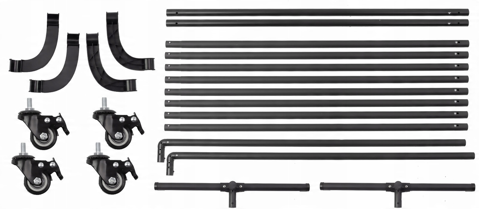 Профессиональная модульная опорная рама черного цвета, разработанная для фотографов и студий, которые ценят мобильность, стабильность и гибкость конфигурации. Рамка идеально подходит для подвешивания фотофонов, обеспечивая безопасность и удобство использования.