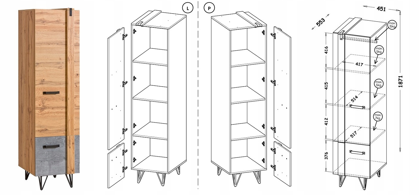 - шкаф - книжный шкаф 02: 45,1 х 187,1 х 55,3 см