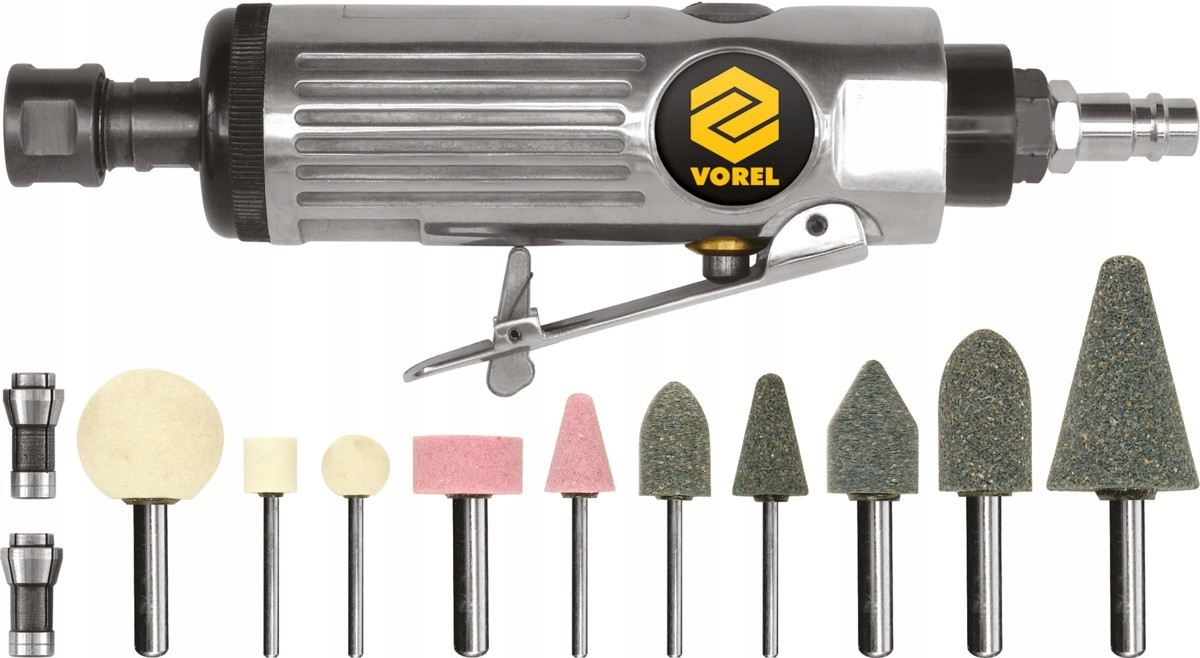 Пневматическая прямошлифовальная машина с принадлежностями, 10 деталей.