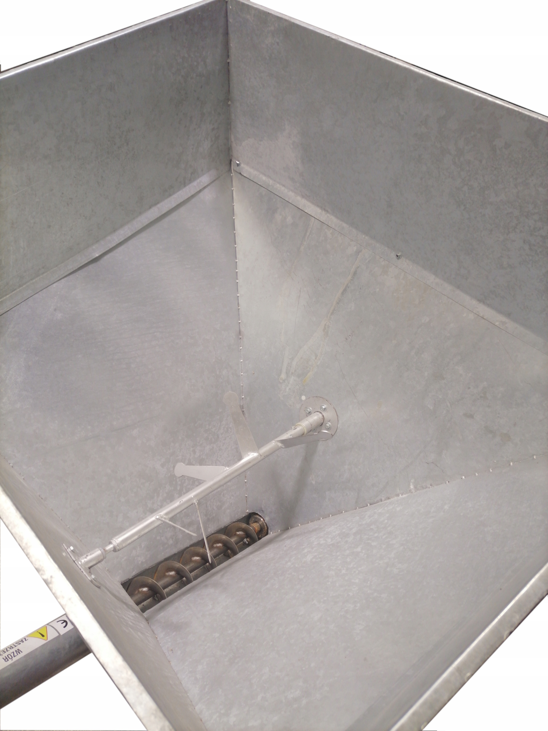 Устройство полностью оцинковано, что делает его устойчивым к истиранию, ржавчине и царапинам. Прочная конструкция устройства на тележке и 4 колесах позволяет кормушке свободно перемещаться даже по неровным поверхностям. Загрузочный бункер максимально увеличен (самый большой на рынке), поэтому одноразовая загрузка обеспечивает очень длительную эксплуатацию без обслуживания. Форма винта имеет эргономичную форму, благодаря чему винт не засоряется и обеспечивает безотказную работу.