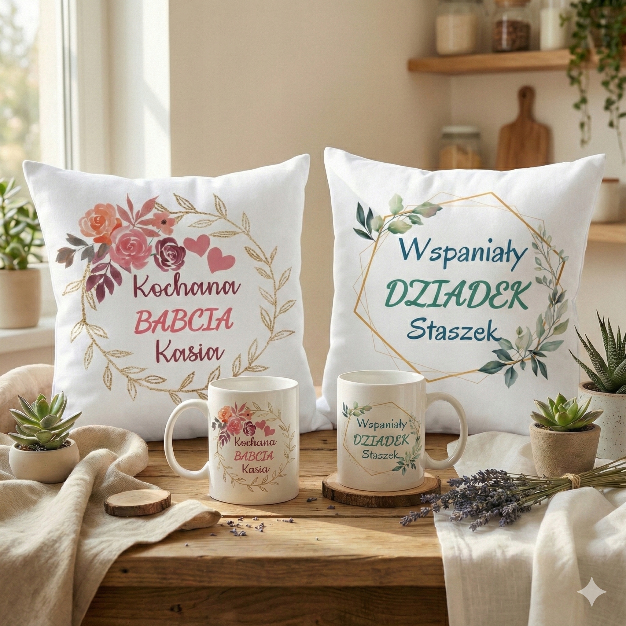 ⭐️Отличный набор на День бабушки и дедушки — 2 подушки + 2 кружки!