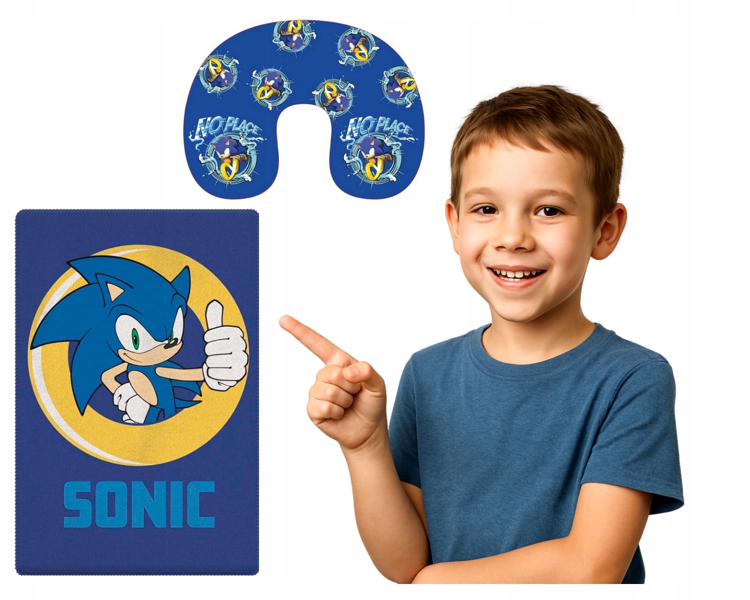 Sonic Sonic the Hedgehog ОДЕЯЛО / ОДЕЯЛО + ДОРОЖНАЯ ПОДУШКА, подголовник с круассаном