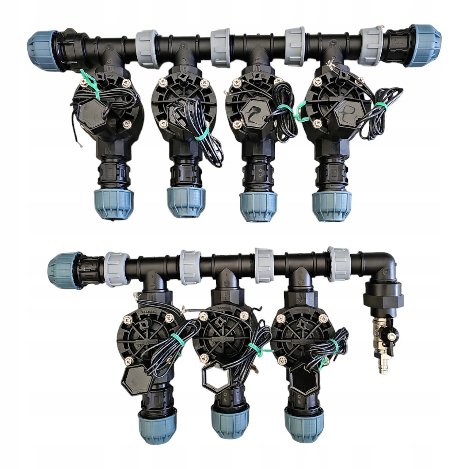 - 7-секционный коллектор с электромагнитными клапанами Rain Bird HV и подключение компрессора