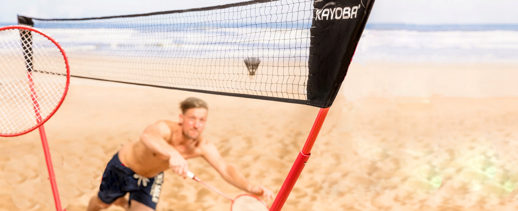 Портативный и невероятно изобретательный набор для бадминтона, содержащий все необходимое для увлекательного бадминтонного матча, а кроме того имеющий настолько оригинальную форму, что не нужно вбивать в него какие-либо сеточные стойки песок или газон.